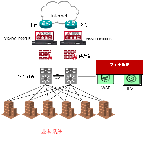 • 在客户业务的出口双机部署kaiyun.com通明湖应用交付控制器,并配置链路检测配置文件,若线路故障实现自动进行主备切换故障转移。