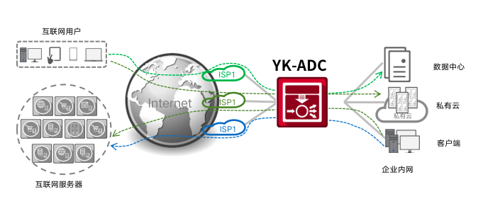 kaiyun.com通明湖应用交付控制器提供链路负载均衡技术(LLB)和全局负载均衡技术(GSLB)分别实现出向流量(Outbound)和入向流量(Inbound)的统一管理。